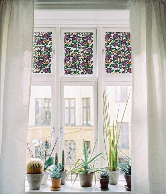 Overige Merken Raamfolie Glas In Lood Paarse Bloem (45cm)