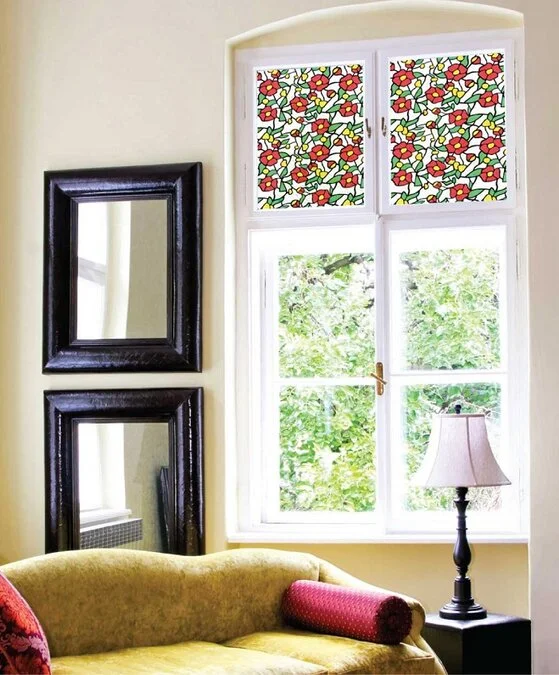 Zoek je een stijlvol raamfolie dat inkijk tegen gaat én je woning opfleurt? Kies dan voor dit mooie glas in lood raamfolie met bloemenprint. Bestel een kant en klare rol van 15 meter. Of laat je raamfolie op maat snijden. Kies dan de gewenste maat in het keuze menu.